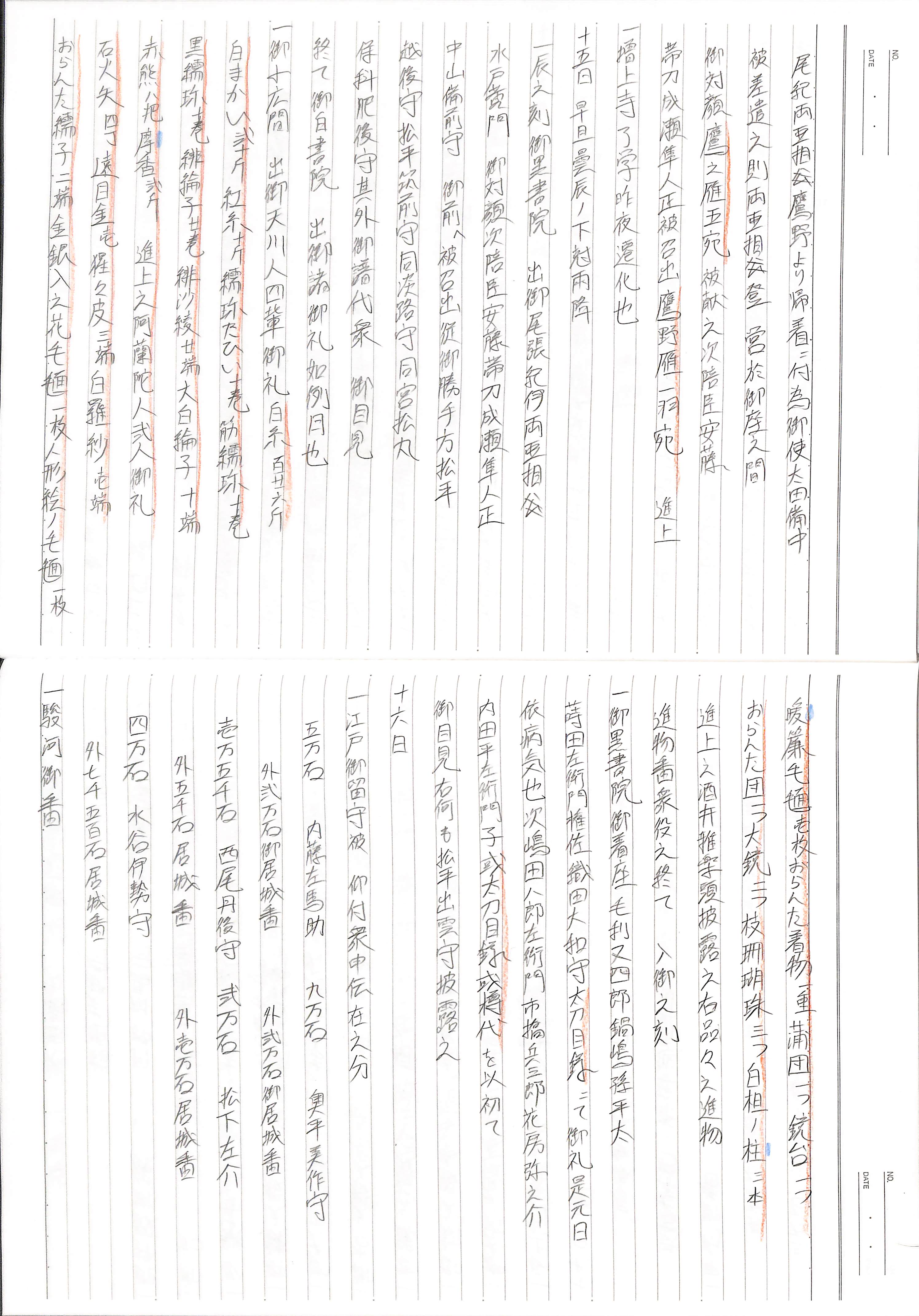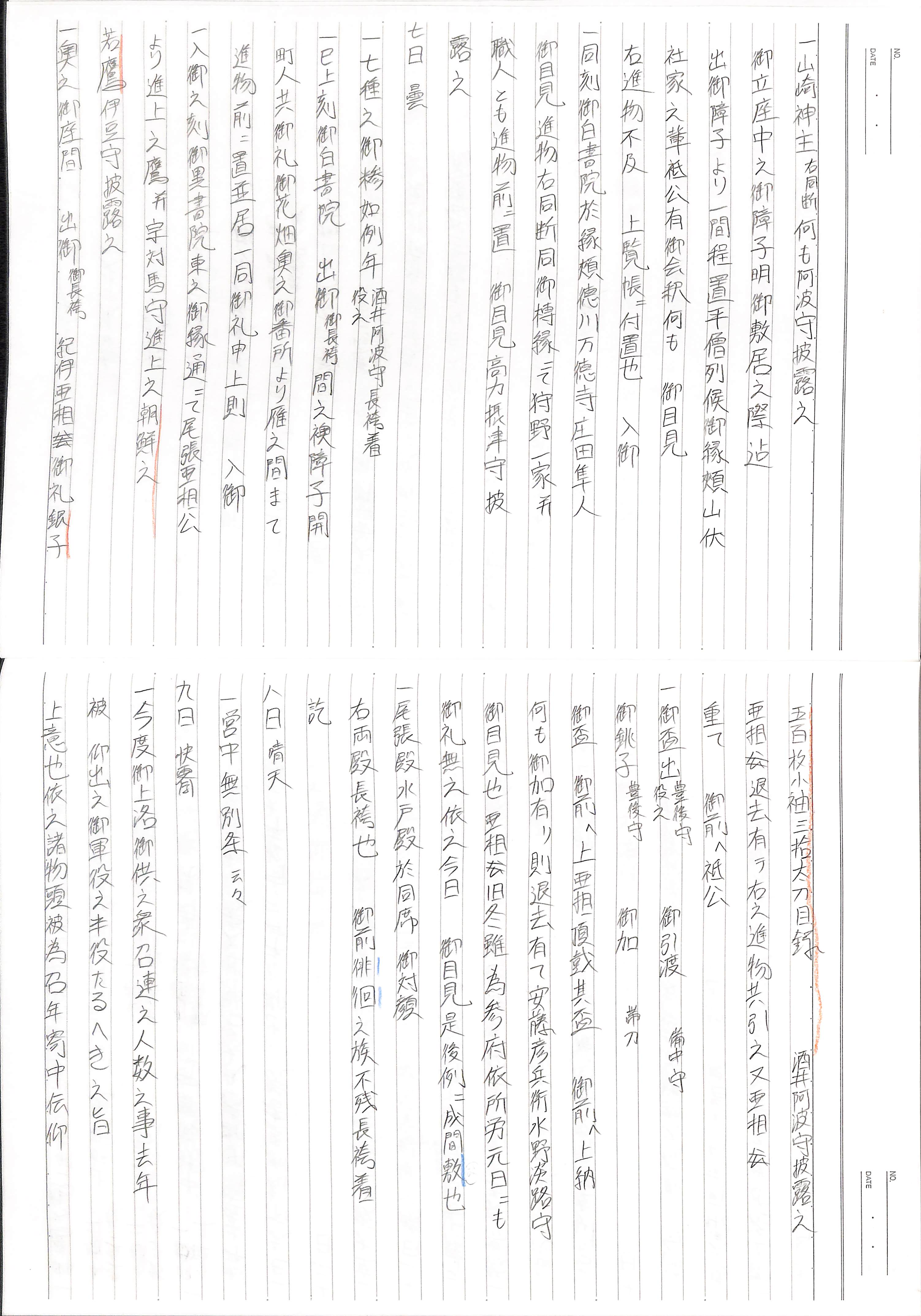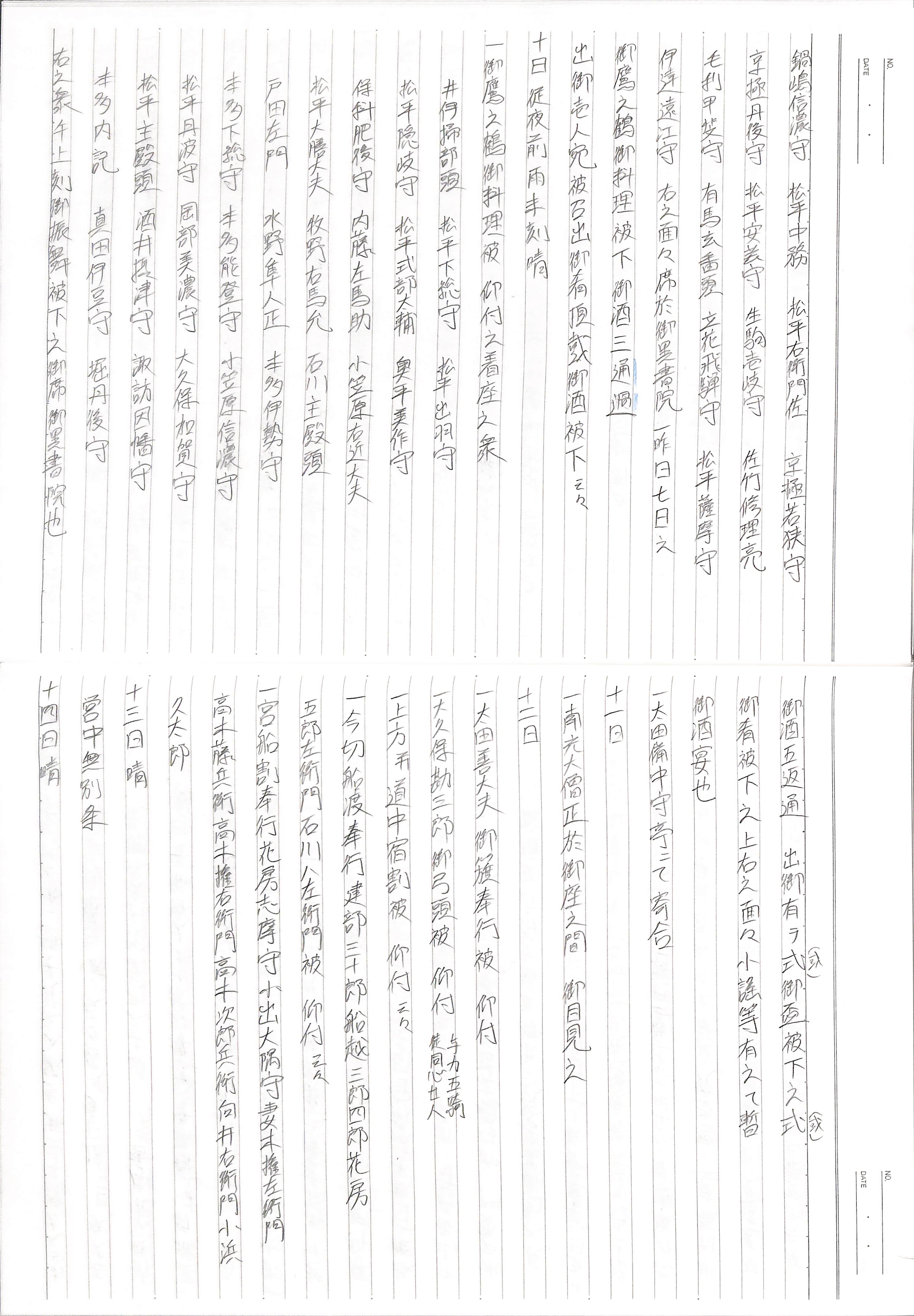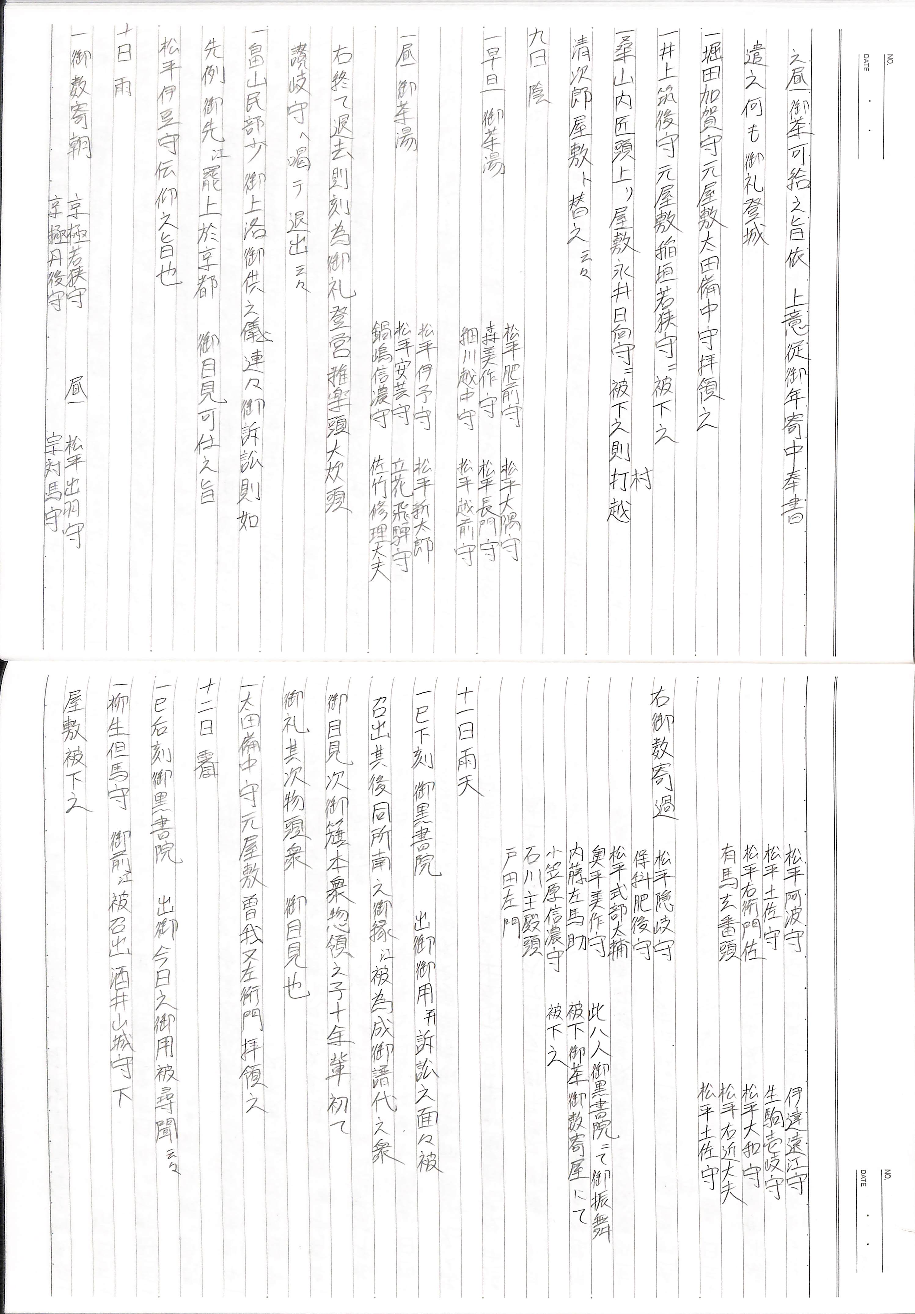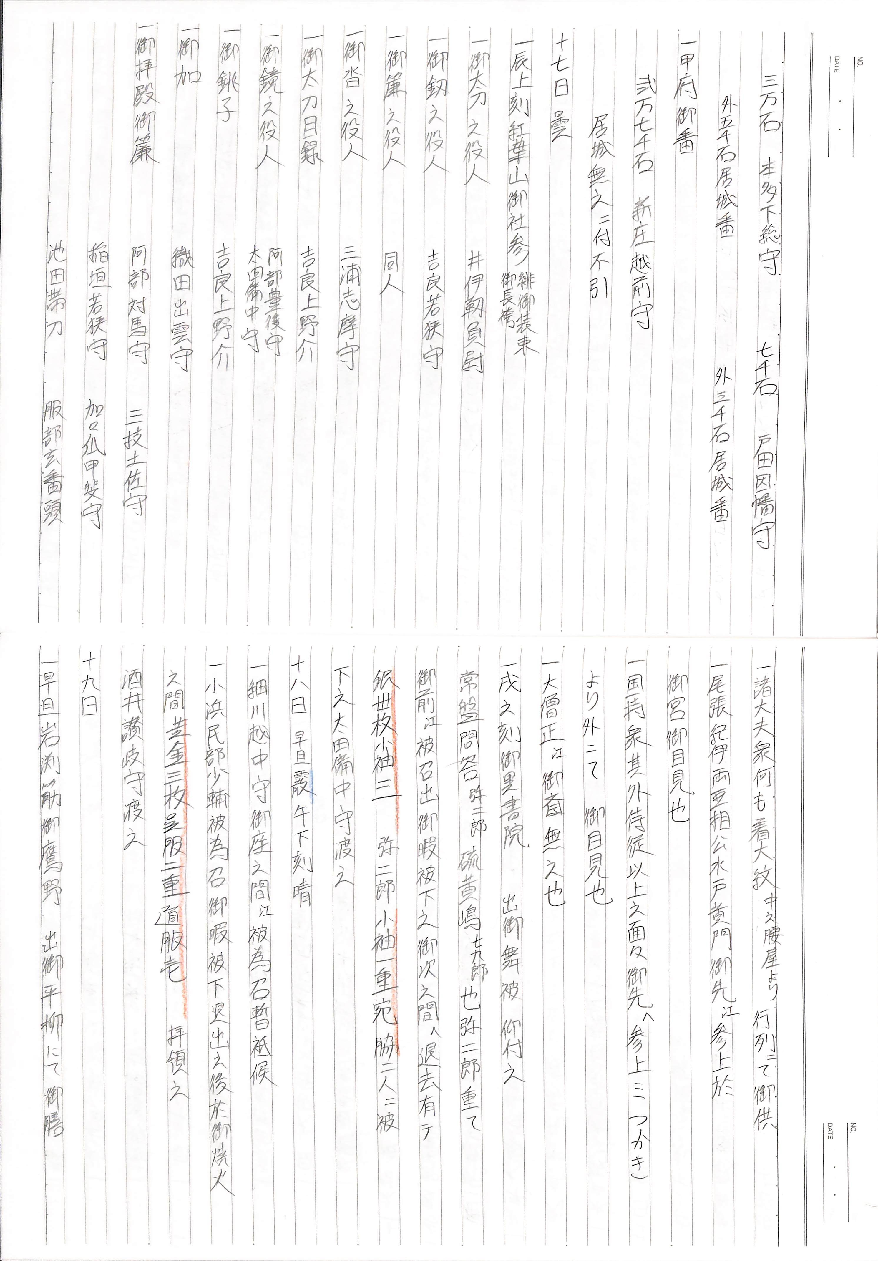 藤井讓治監修『江戸幕府日記姫路酒井家本』第3巻(ゆまに書房、2003年)より作成。原史料は姫路市立城郭研究室所蔵。