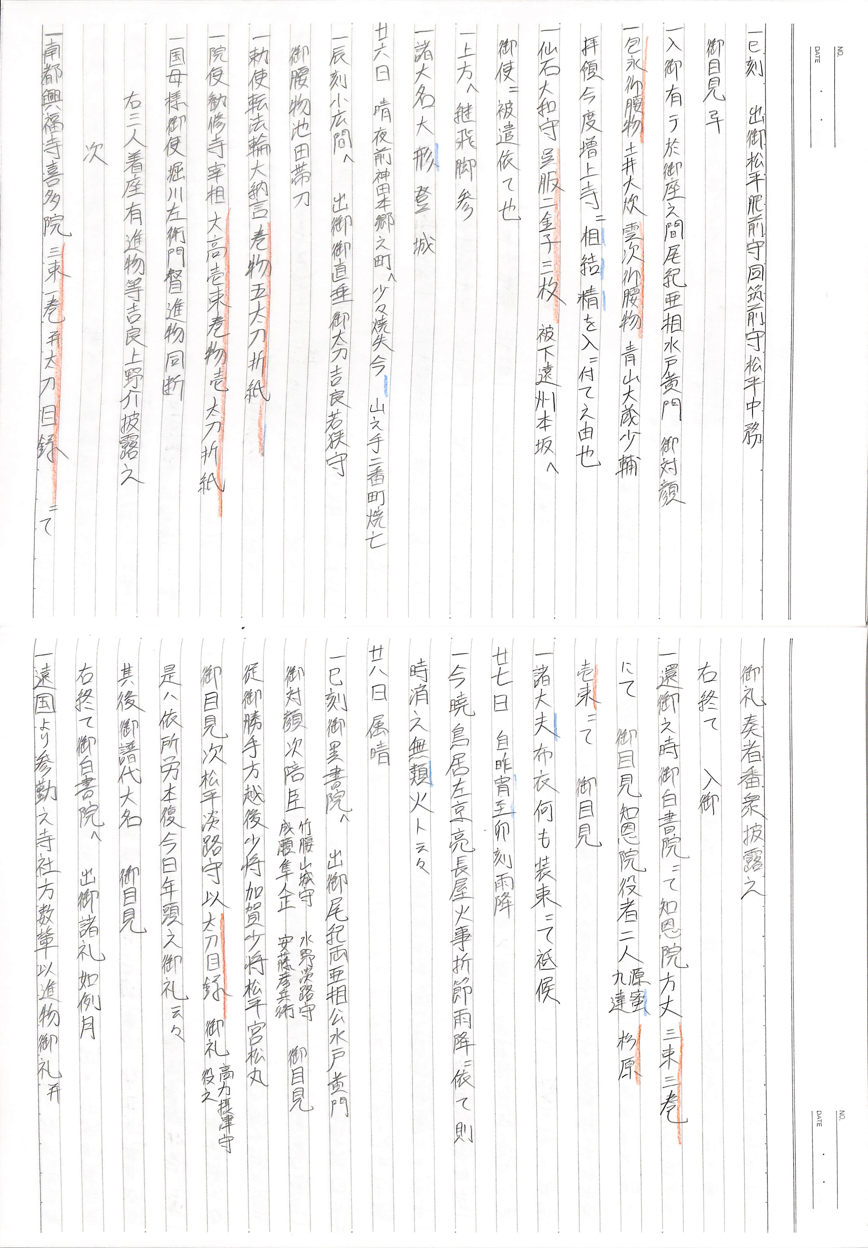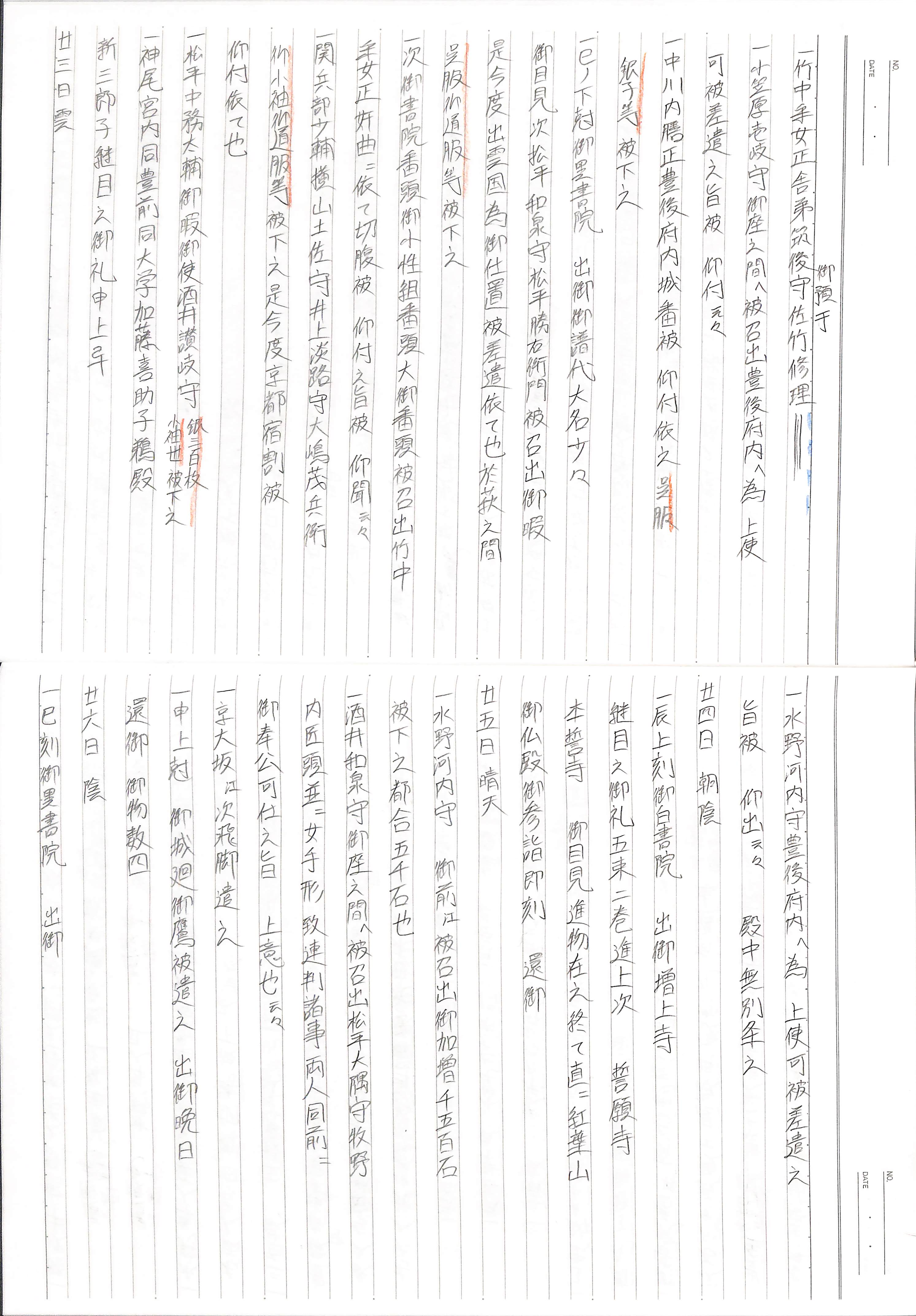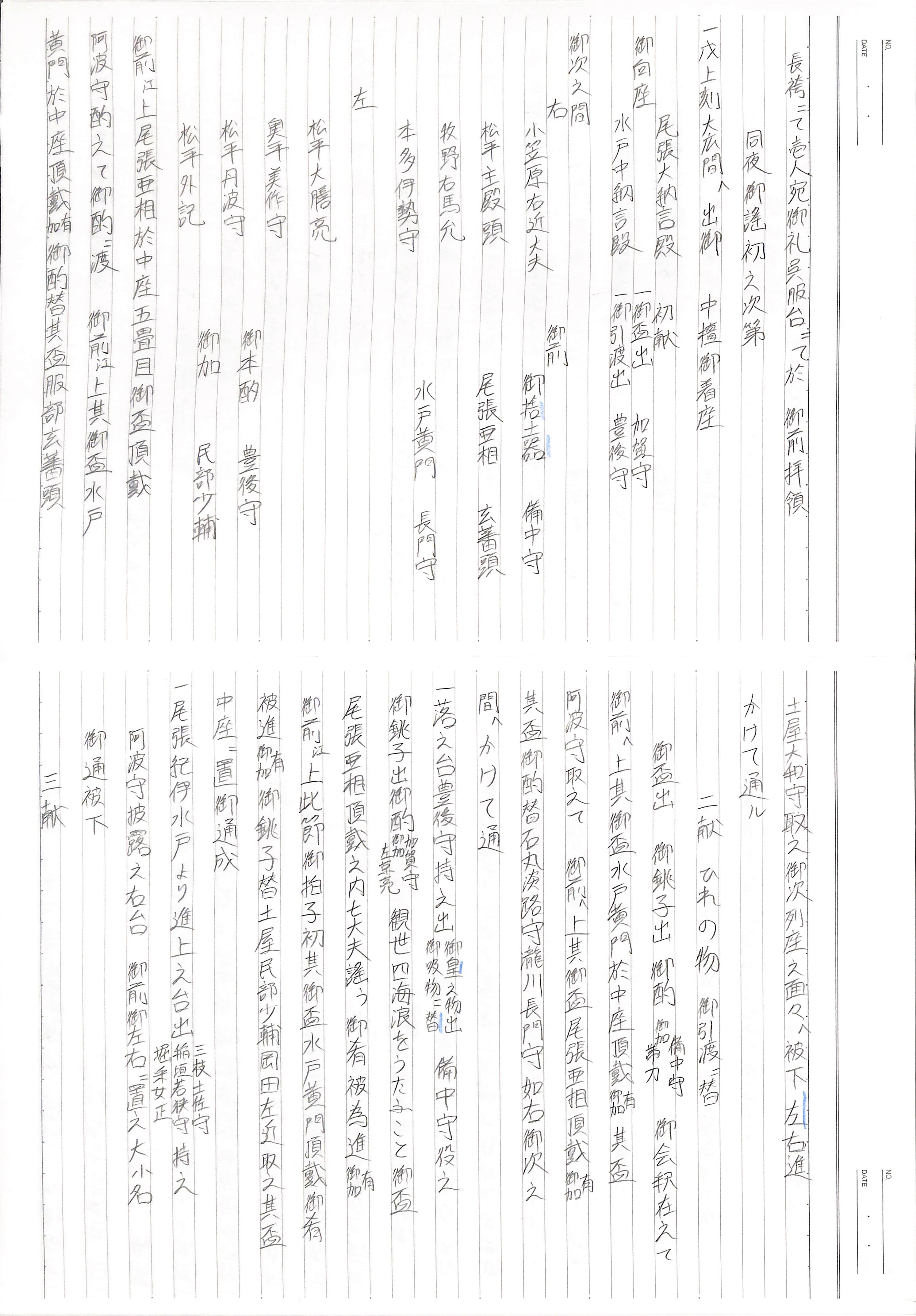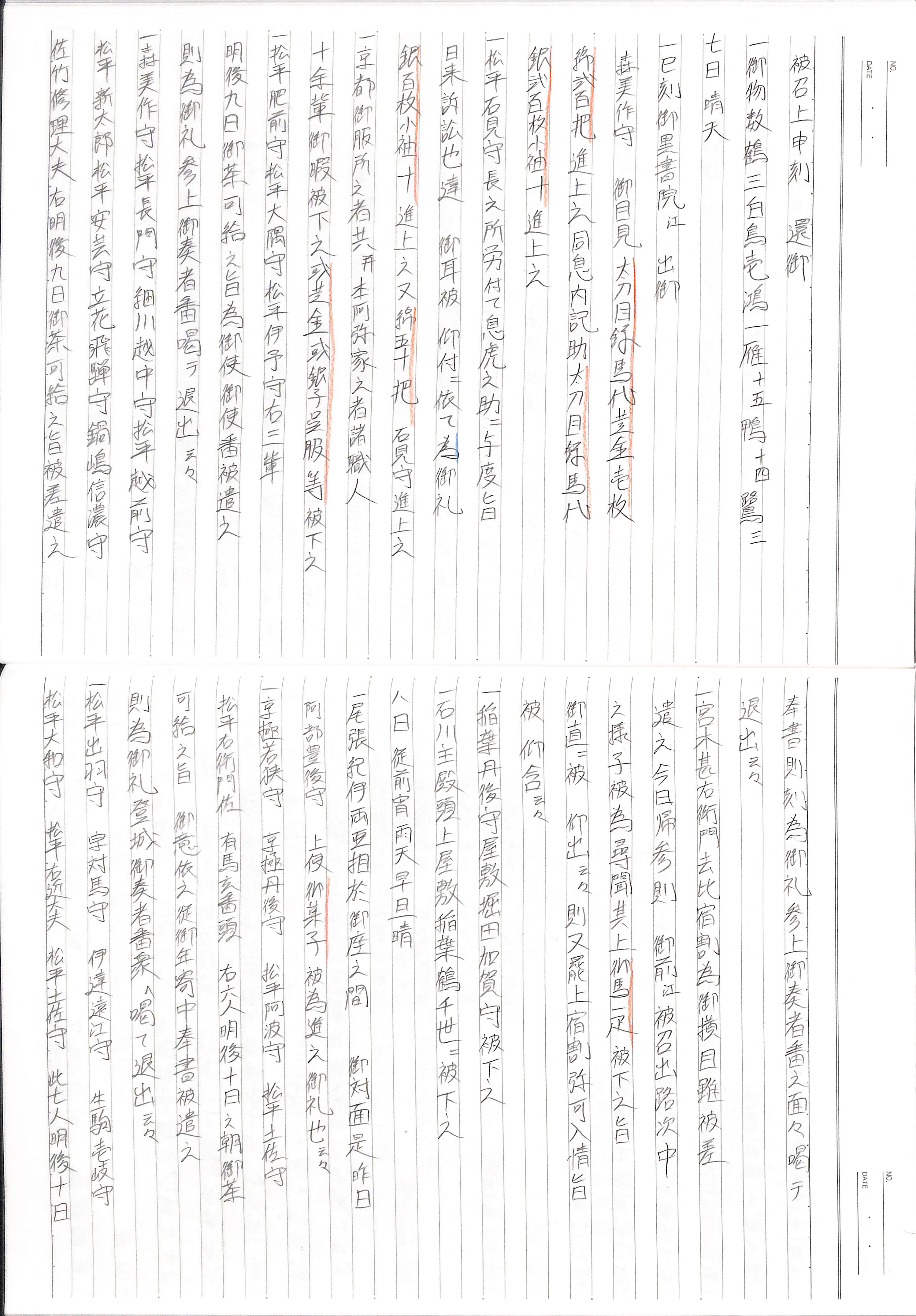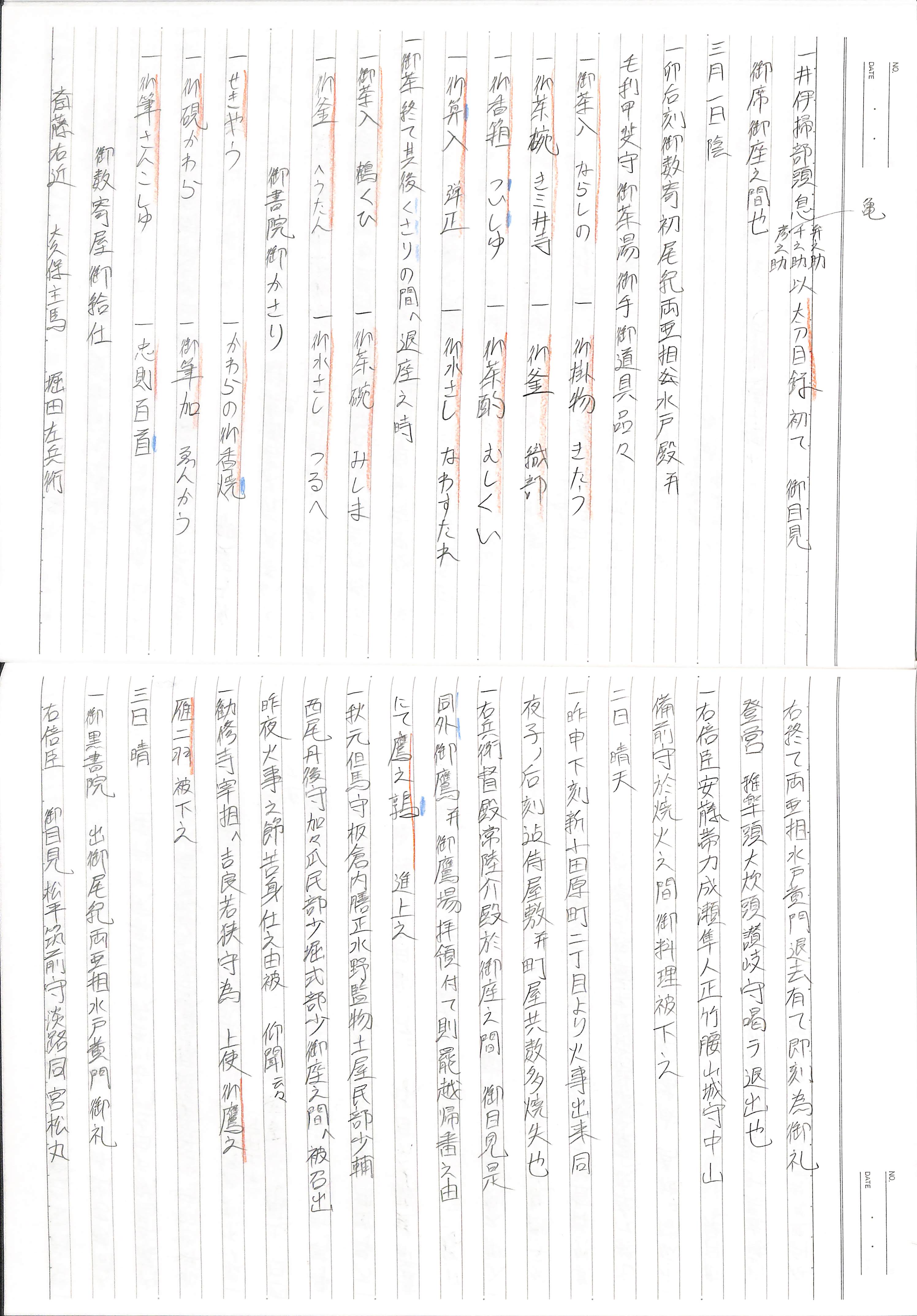 藤井讓治監修『江戸幕府日記姫路酒井家本』第3巻(ゆまに書房、2003年)より作成。原史料は姫路市立城郭研究室所蔵。