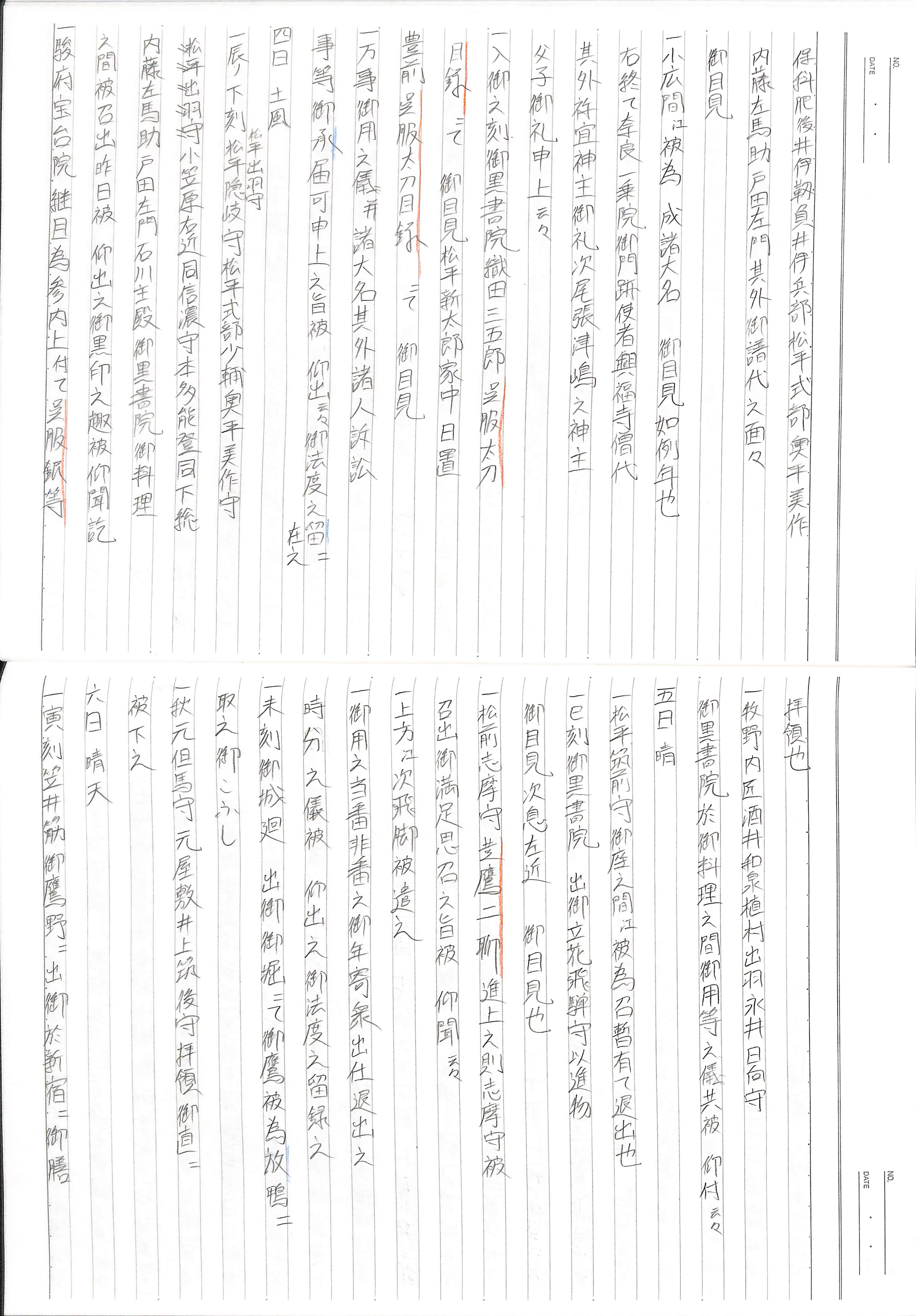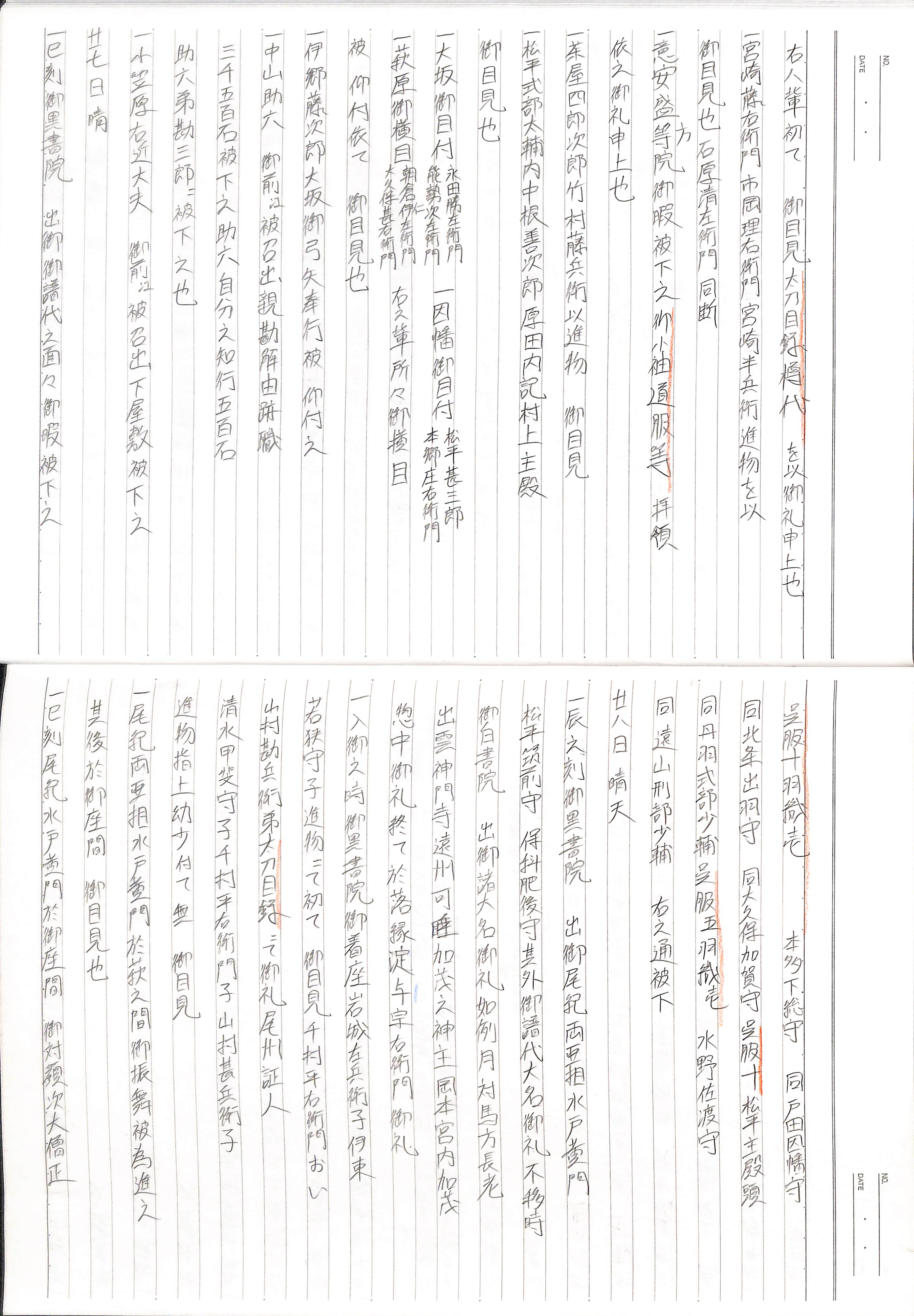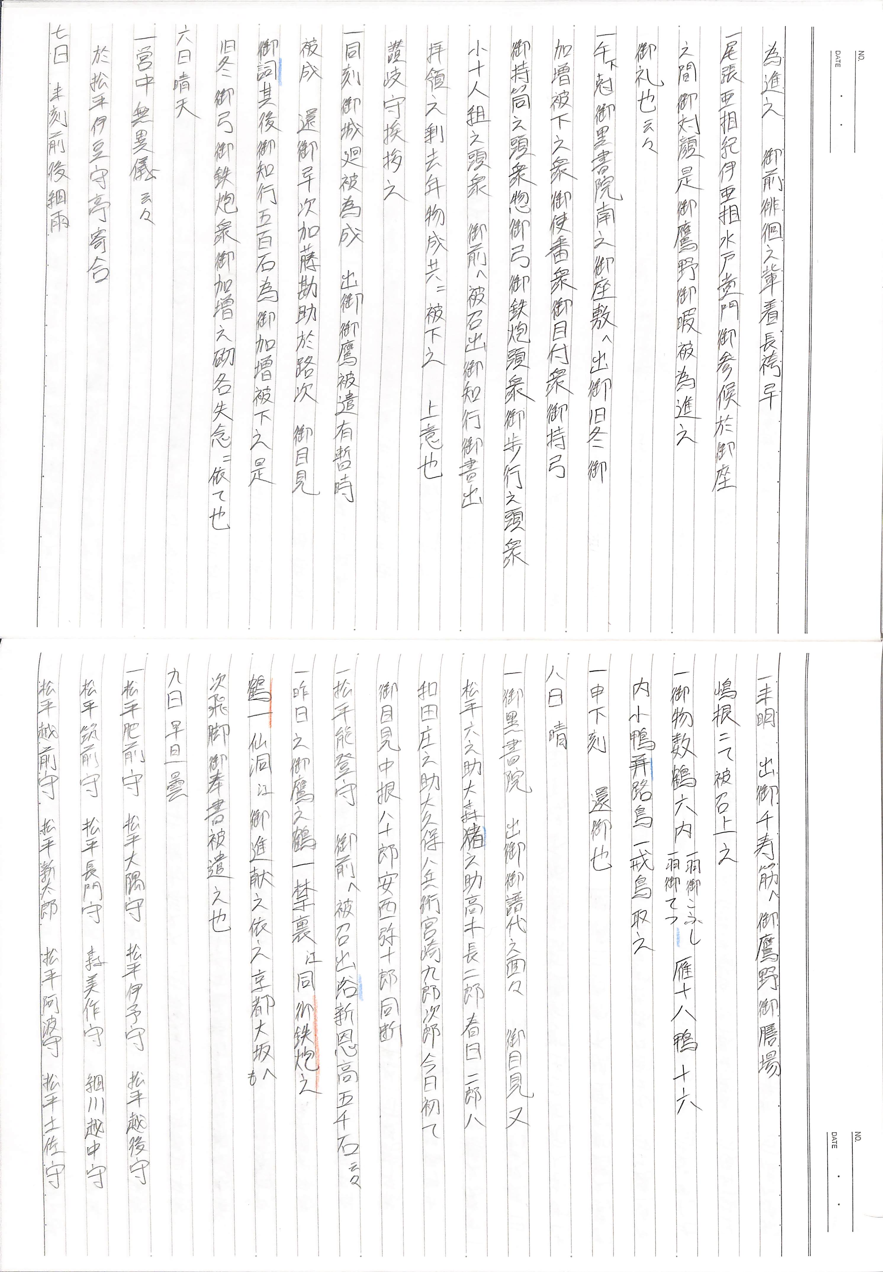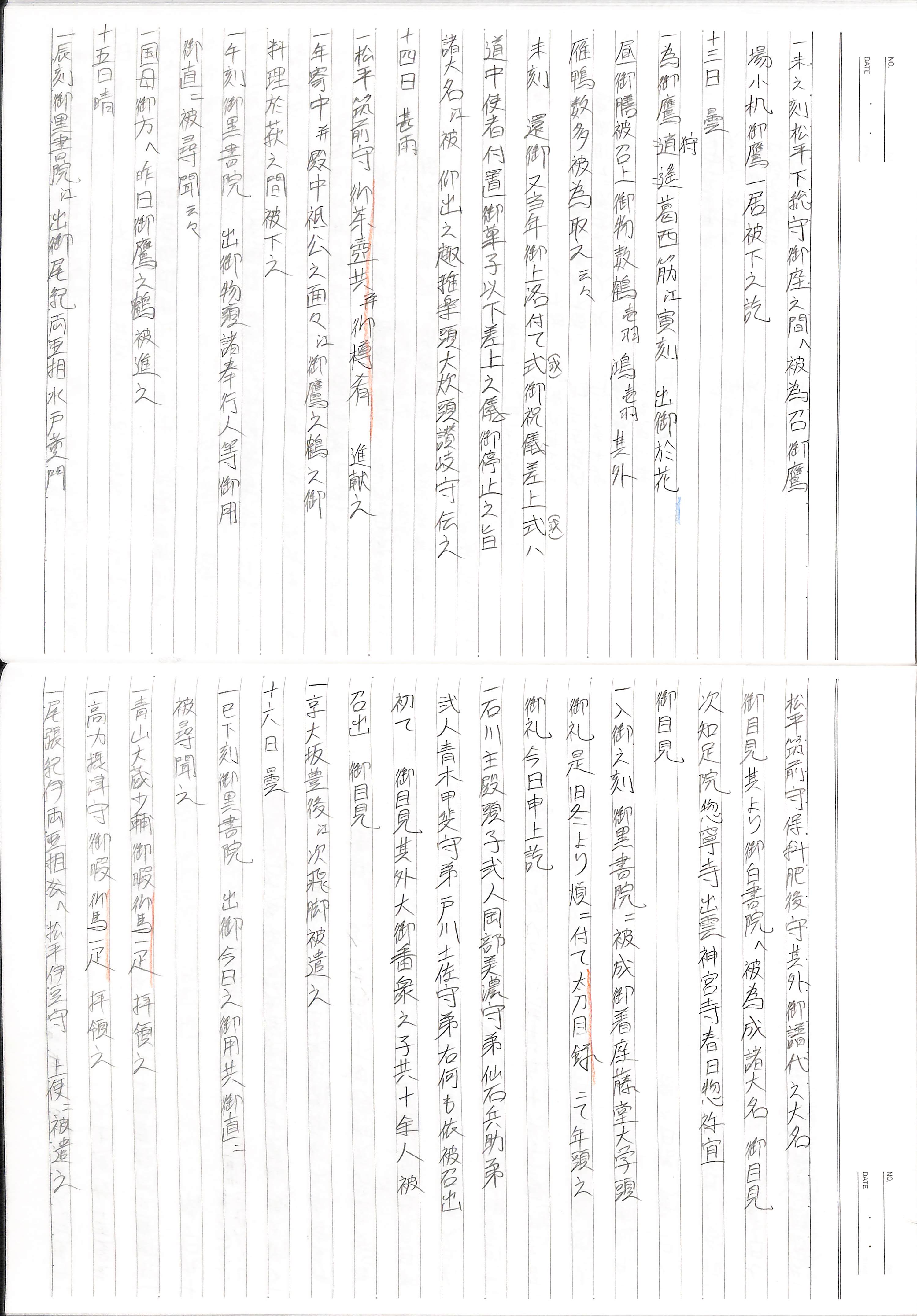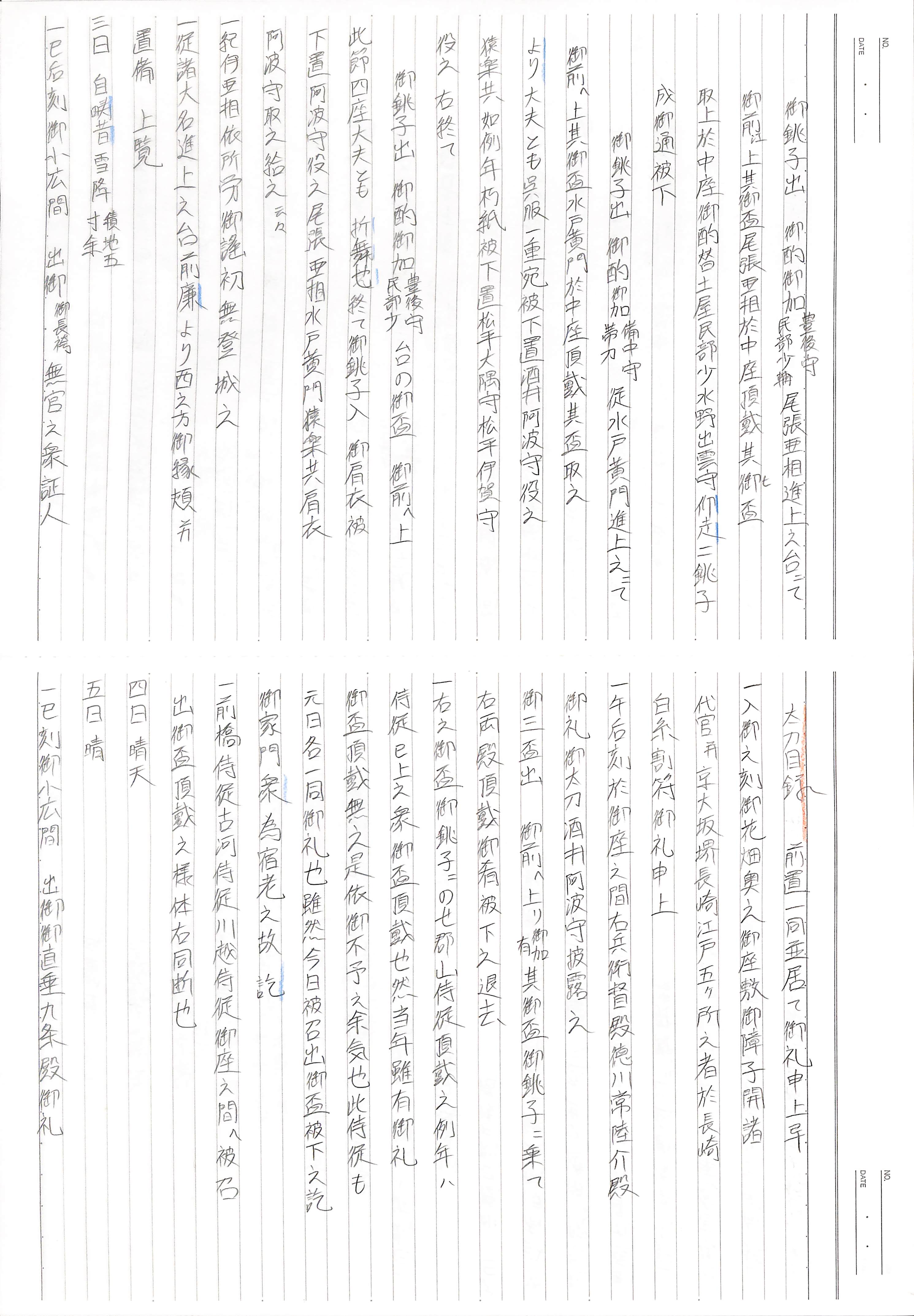 藤井讓治監修『江戸幕府日記姫路酒井家本』第3巻(ゆまに書房、2003年)より作成。原史料は姫路市立城郭研究室所蔵。