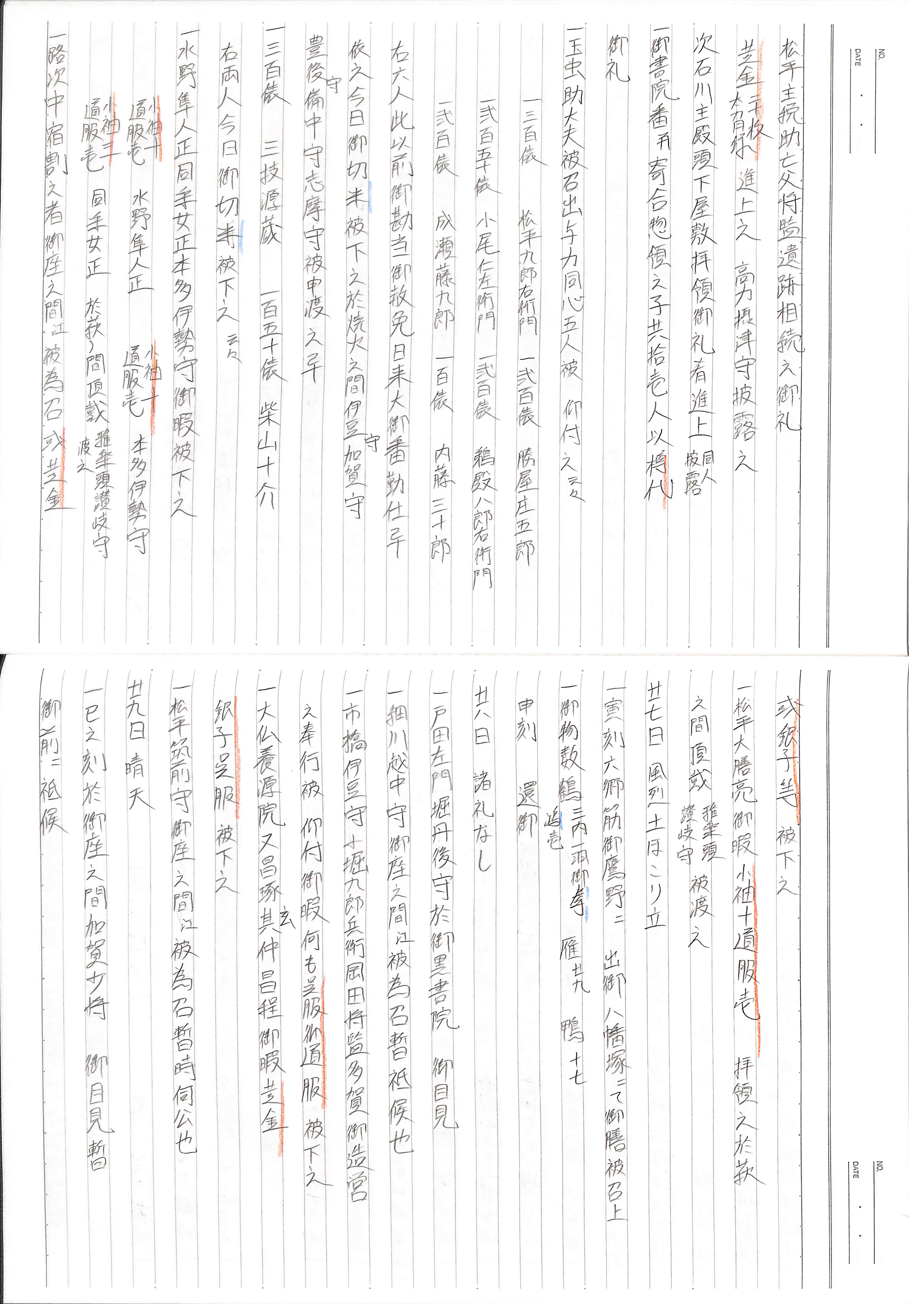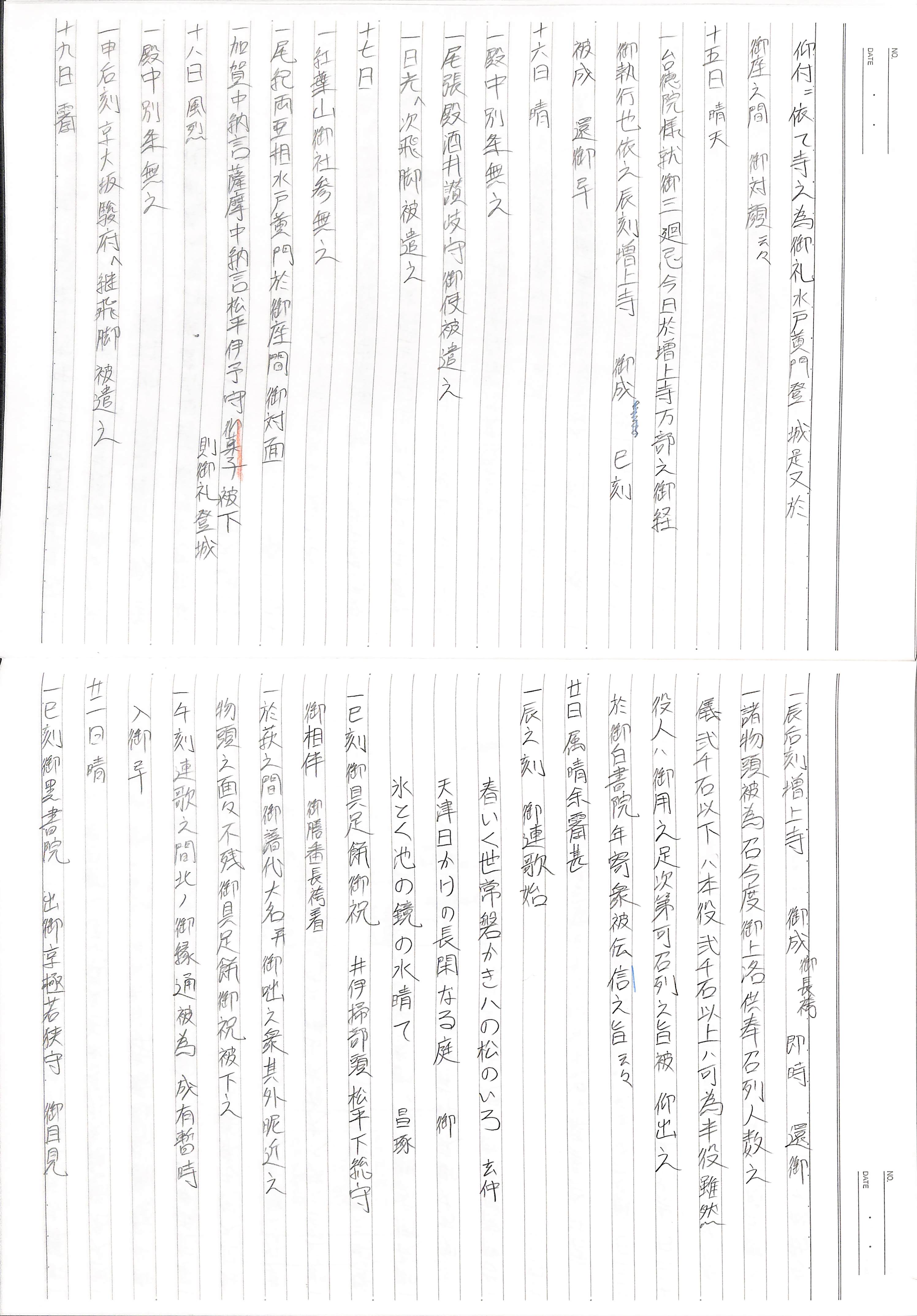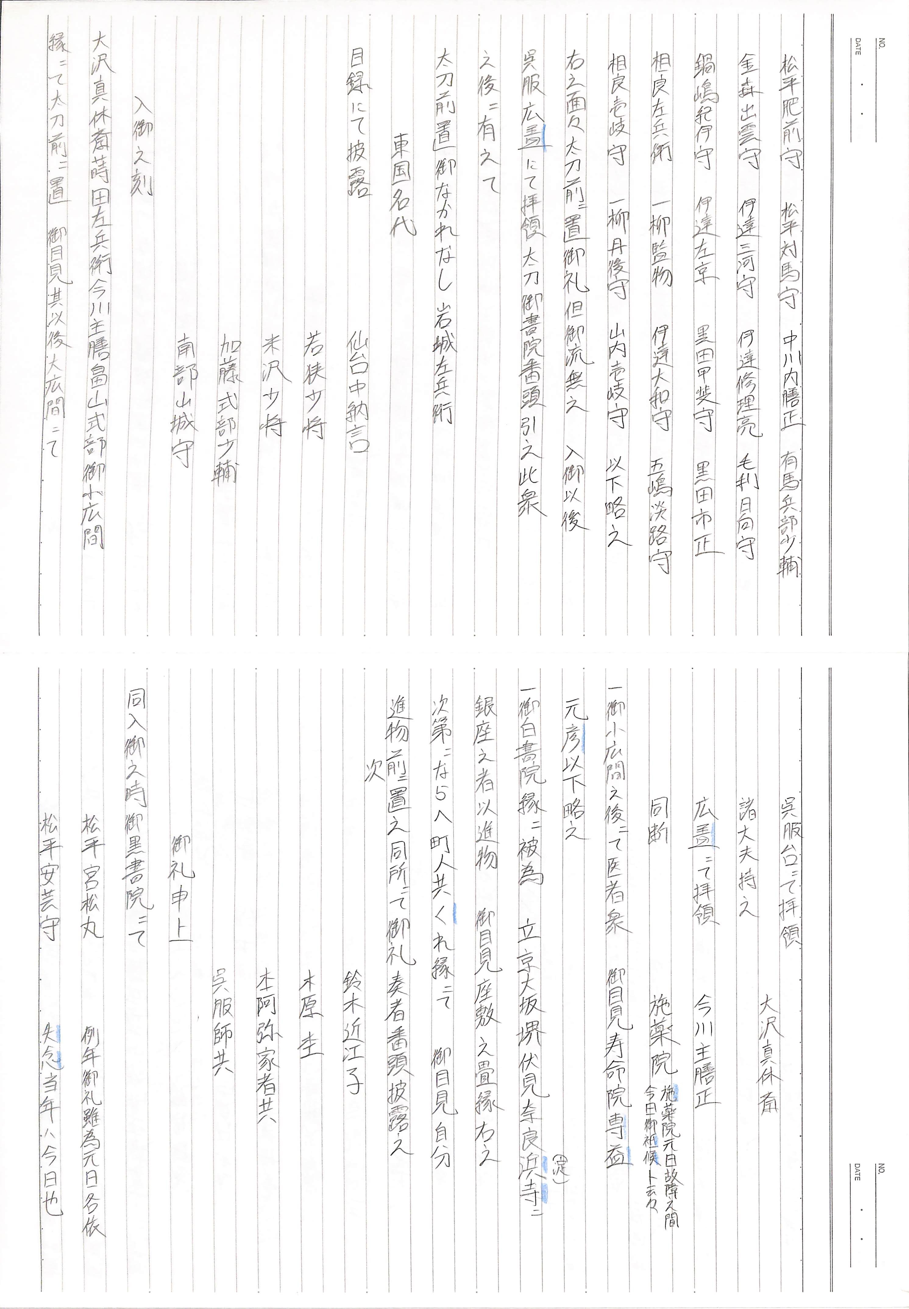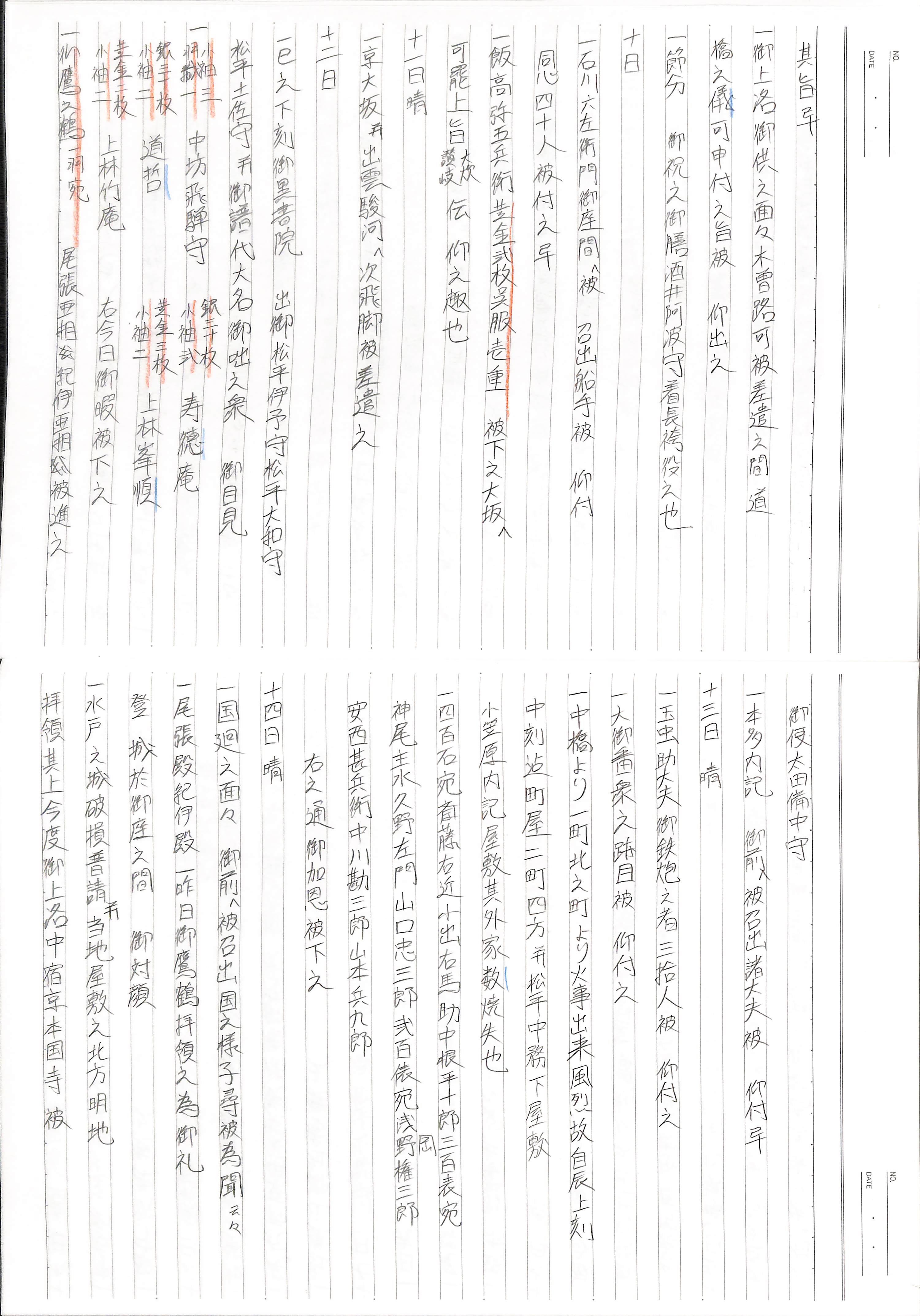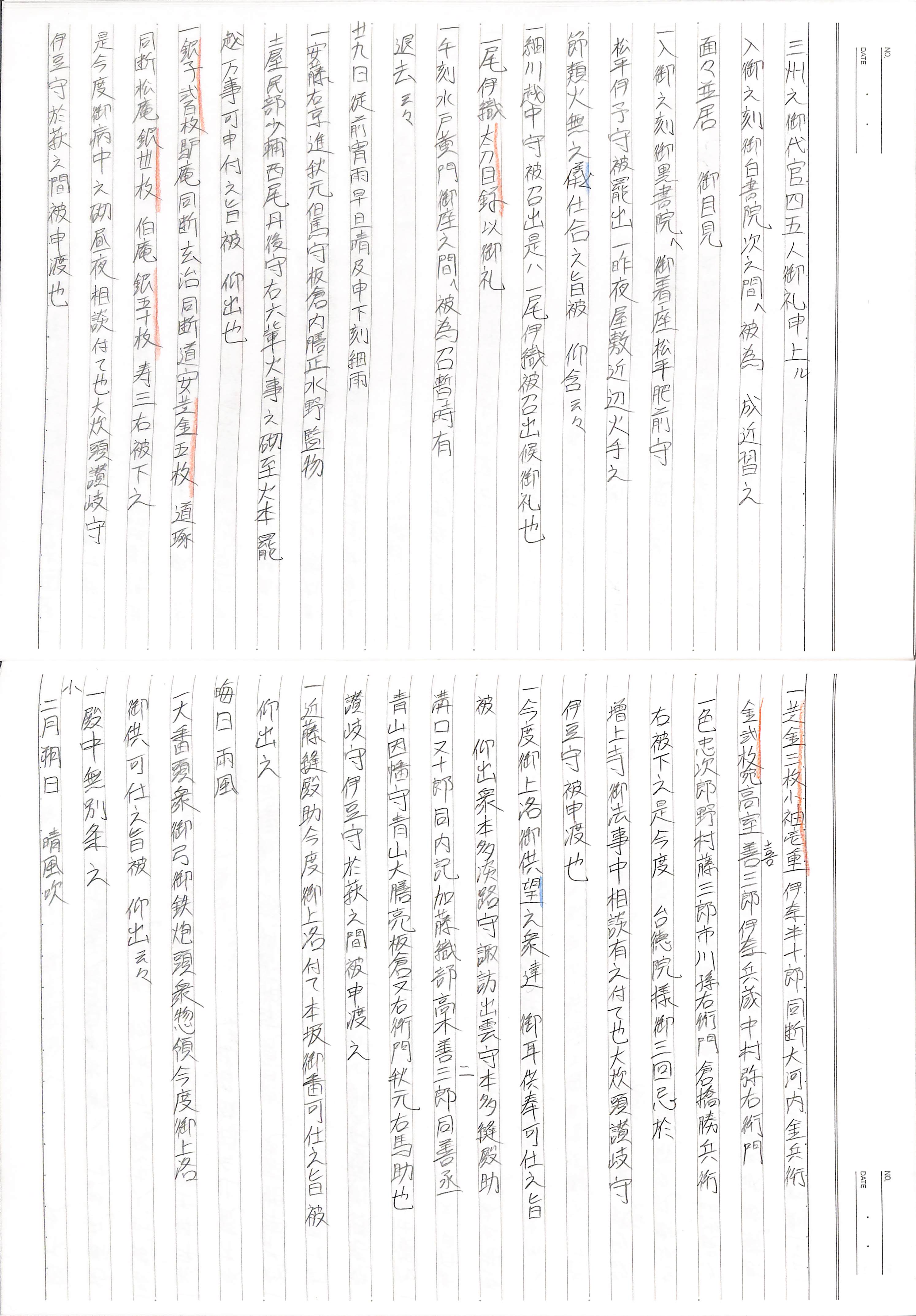 藤井讓治監修『江戸幕府日記姫路酒井家本』第3巻(ゆまに書房、2003年)より作成。原史料は姫路市立城郭研究室所蔵。