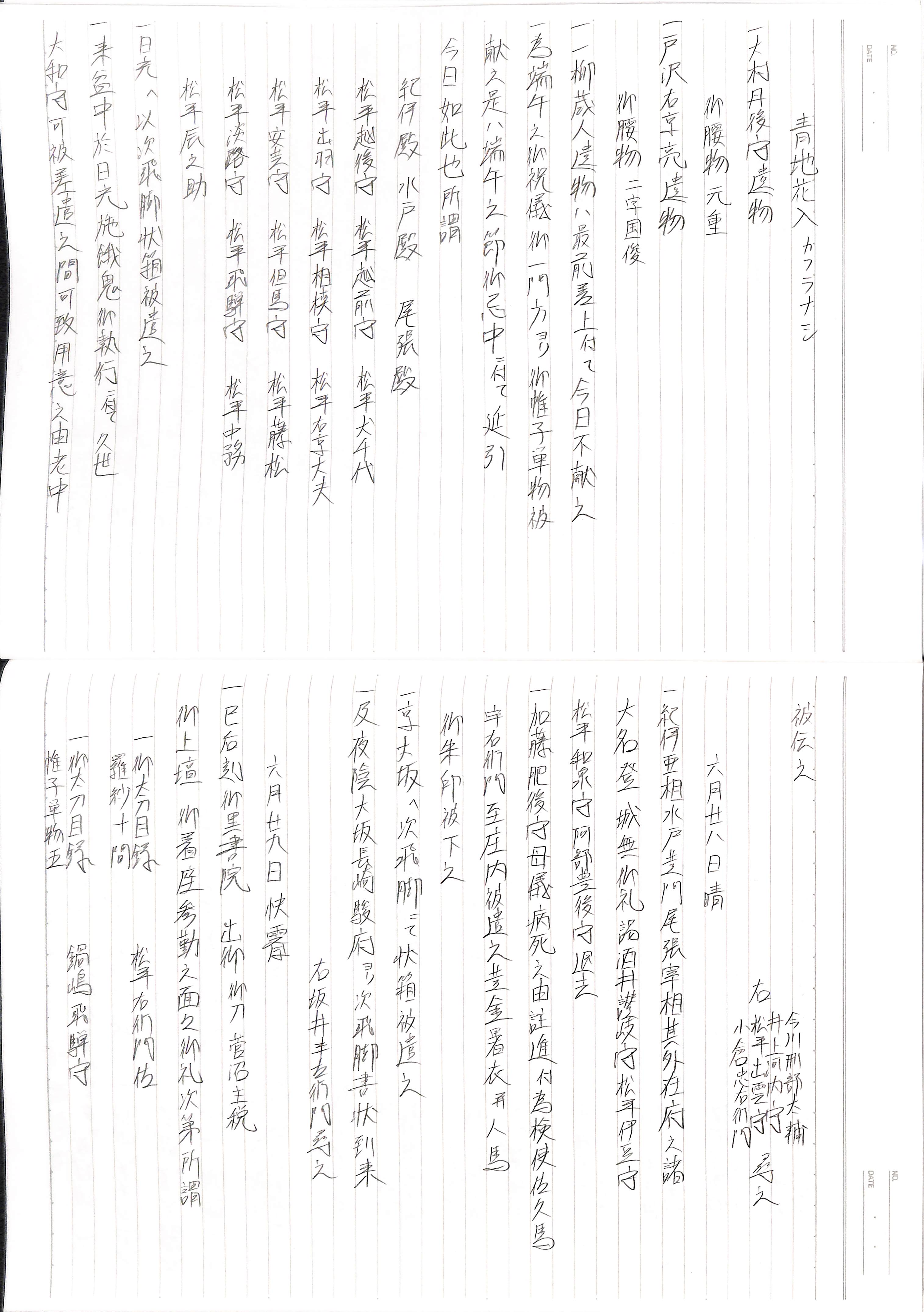藤井讓治監修『江戸幕府日記姫路酒井家本』第25巻(ゆまに書房、2004年)より作成。原史料は姫路市立城郭研究室所蔵。