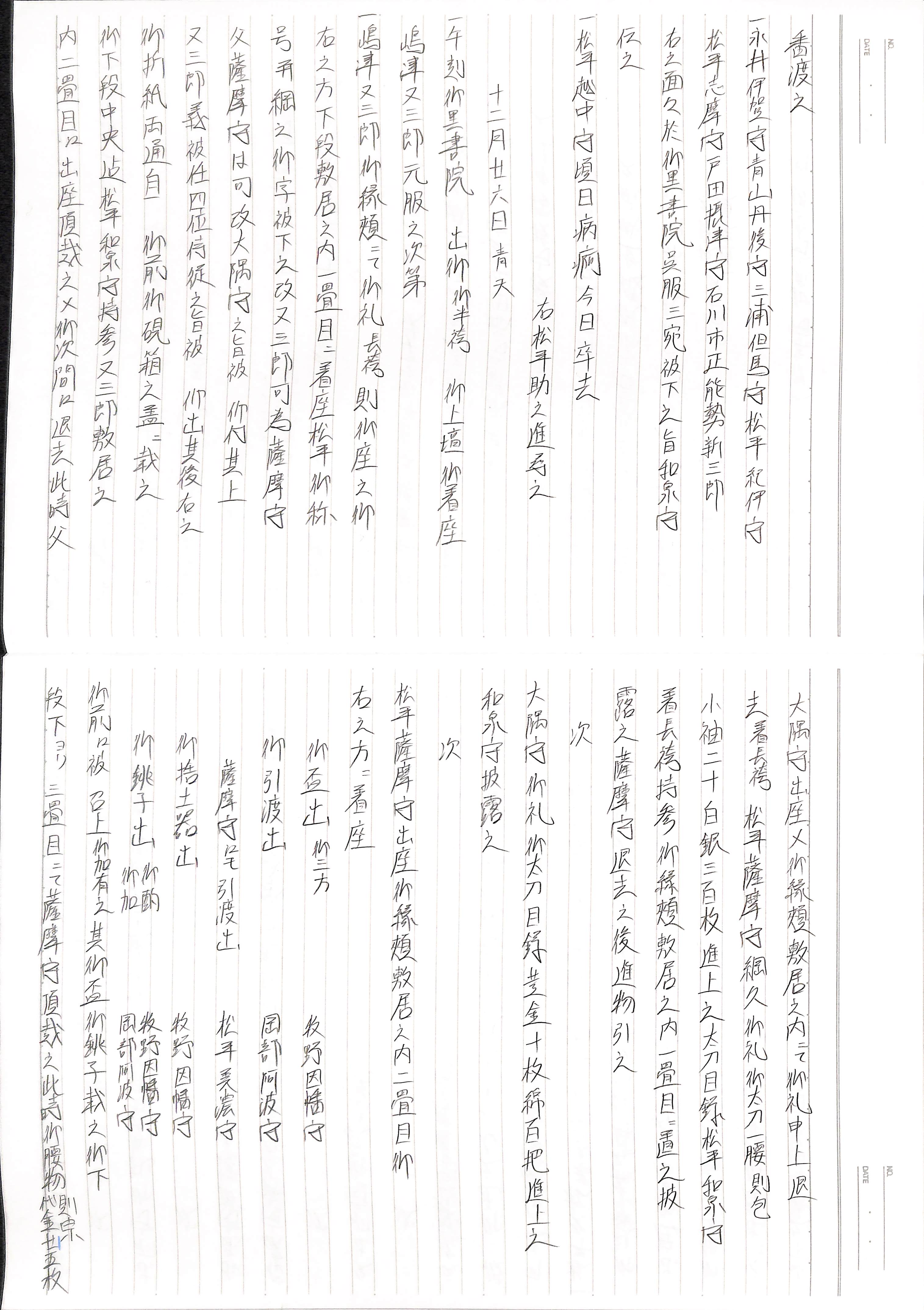 藤井讓治監修『江戸幕府日記姫路酒井家本』第25巻(ゆまに書房、2004年)より作成。原史料は姫路市立城郭研究室所蔵。